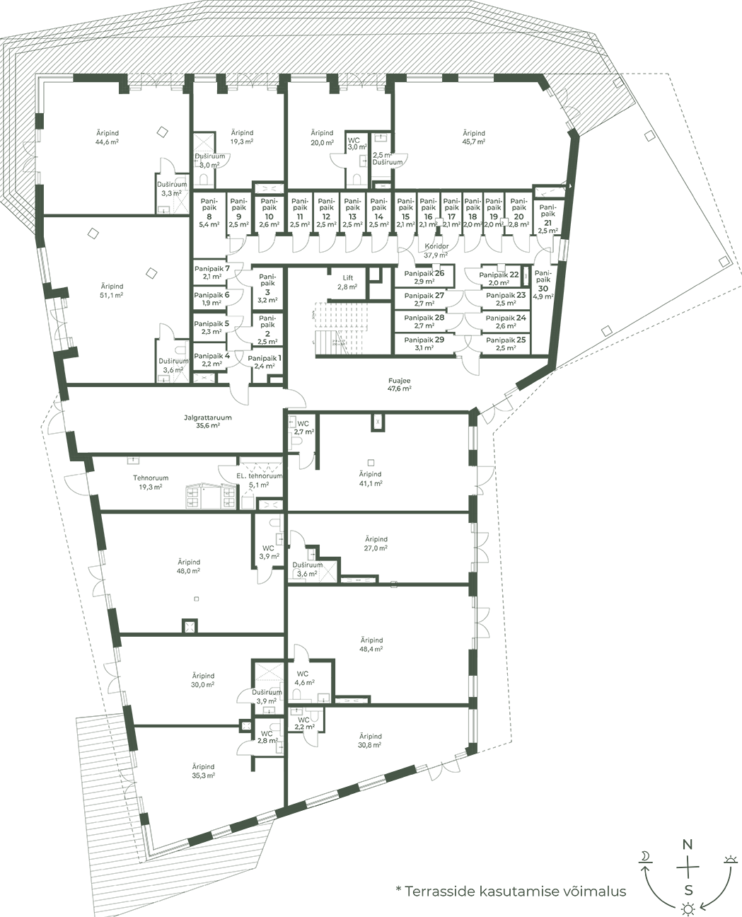 Tabasalu Pargikodu I korrusel ootavad teenusepakkujaid erinevas suuruses moodsad äripinnad. Tee siia väike armas kohvik, ava juuksurisalong, alusta joogastuudioga või anna tantsutrenne – võimalusi on lõputult. Vaata ka korruseplaani!